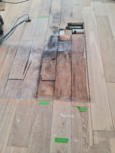We specialise in repairing and restoring all types of wooden floors. Whether it’s traditional oak planks, parquet patterns, or engineered wood, each repair is carefully matched so it blends seamlessly with the existing floor. Our recent work on an oak plank floor is a perfect example — what began as a floor full of visible wear and damage was transformed into a smooth, finished surface full of character. (Take a look at the before-and-after photos below!)